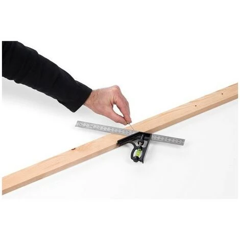 Vous souhaitez tracer et contrôler vos angles ? Dans ce cas, cette équerre combinée est incontournable. L’équerre peut mesurer jusqu’à 300 mm et dispose d’une échelle graduée en mm et en pouces.