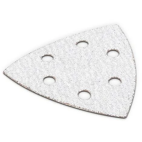 Ce jeu comprend 5 feuilles de papier abrasif triangulaires, de 90 cm de côté, et de grain 40. Elles sont donc idéales pour le ponçage grossier des surfaces peintes. Elles sont compatibles avec les multi-outils des marques les plus courantes qui utilisent un système auto-agrippant.