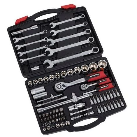 Grâce à ce jeu de 81 clés à douille (1/2 » & 1/4 ») en acier en chrome vanadium satiné, vous aurez tout à portée de main pour visser et boulonner solidement. Ce jeu est rangé dans un coffret que vous pouvez facilement emporter partout.