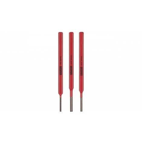 Ce jeu contient 3 pointeaux servant de chasse-goupilles. Les pointeaux sont réalisés en acier en chrome vanadium et leur queue hexagonale a un diamètre de Ø 8 mm.