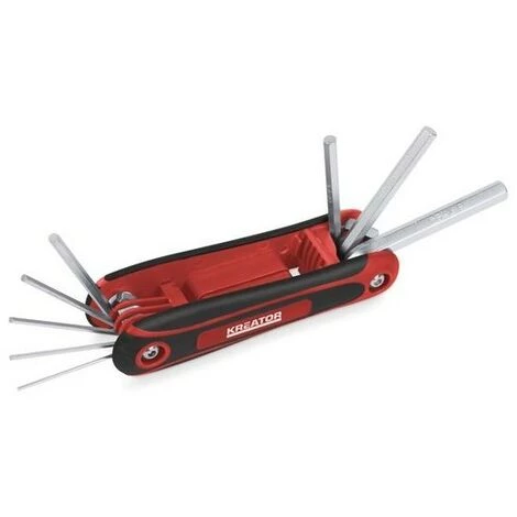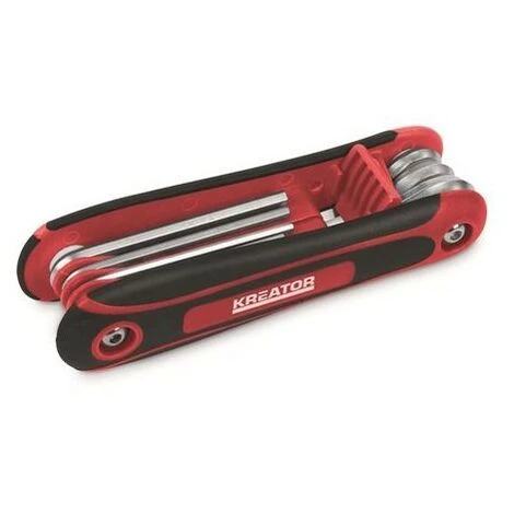 Ceci est un jeu de 8 clés Allen pratique de Kreator. Tout comme avec un couteau suisse, vous pouvez ouvrir le jeu de clés Allen et vous mettre au travail. Les clés sont en chrome vanadium de haute qualité.