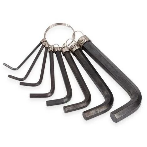 Ces 8 clés à six pans creux permettent de serrer solidement un boulon ou une vis à trou hexagonal sans endommager la tête de vis. Les clés sont en chrome-vanadium et sont suspendues à un anneau pratique.