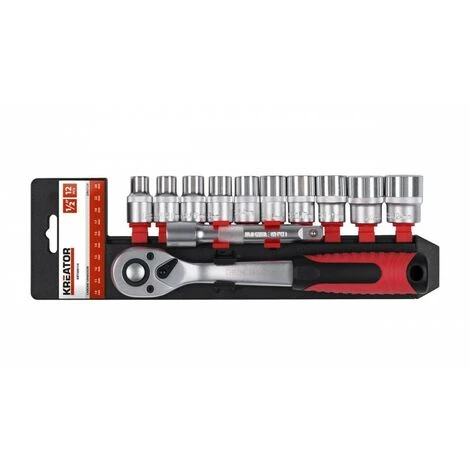 - 10 clés à douille (1/2″) : 10 – 11 – 12 – 13 – 14 – 15 -17 – 19 – 22 – 24 mm