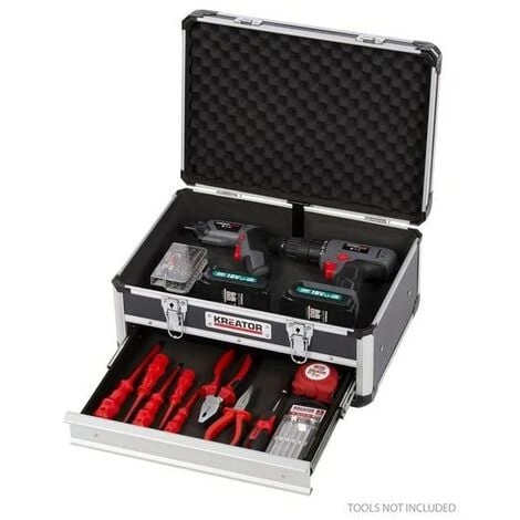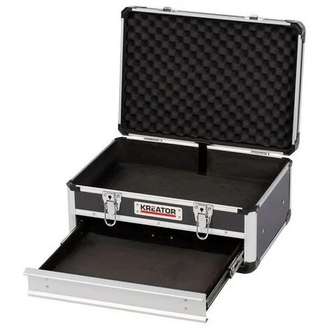 Ce coffre de rangement avec cadre en aluminium de Kreator offre de la place pour tous vos petits et gros outils, mais également pour des jouets ou dvd, etc. Vous les rangez soit dans le compartiment supérieur, soit dans le tiroir en bas. Les petits matériaux sont donc bien séparés. Il est seulement possible d’ouvrir le tiroir après avoir ouvert le coffre même. Vos outils sont donc stockés de manière aussi sûre que possible, certainement vu que le KRT640601B dispose aussi de 2 serrures et 2 clés incluses.