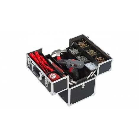 Ce coffre de rangement en aluminium est à la fois très solide et très léger. Vous l’emmènerez facilement partout. Il contient quatre petits bacs séparés à compartiments ainsi qu’un compartiment adaptable. Les coins du coffre sont en acier renforcé, il est muni d’une poignée en matière plastique ergonomique et de deux fermetures à bouchon mécanique. Il est fourni avec une bandoulière réglable. Dimensions : 360 x 230 x 300 mm.