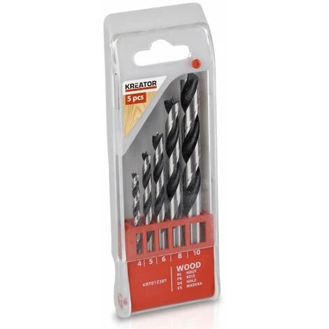 Forets à bois Kréator en coffret de 5 mèches. Coffret 5 mèches: Diamètres 4, 5, 6, 8 et 10 mm