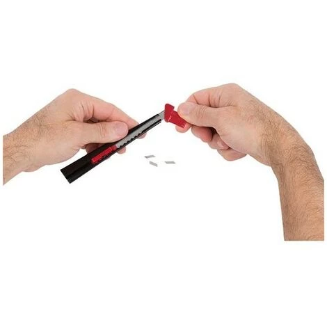 Lorsqu’il est temps de renouveler la lame pour retrouver du tranchant, il est très simple de casser le tronçon de lame usé à l’aide de l’outil spécialement conçu à cet effet.