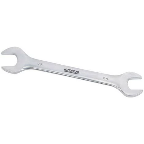 Double clé plate Kreator. La clé plate fait 250 mm de long et est fabriquée en chrome vanadium de haute qualité. Chaque côté a une taille différente. Vous disposez ainsi d’une clé plate de 24 mm et d’une clé plate de 27 mm.