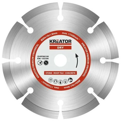 À une vitesse maximale de 17 200 min-1, ce disque diamanté universel de Ø89 mm est adaptée à la découpe à sec de la pierre, des tuiles et du béton. Ses dimensions totales sont Ø89 x 10 x 1,8 mm.