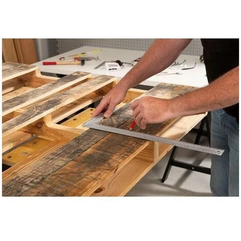 Cette équerre Kreator mesure 500 mm de long. L’équerre est en aluminium légère mais solide et permet de calculer des angles de 90° et 45°. L’équerre est munie d’une graduation en cm et en pouces.