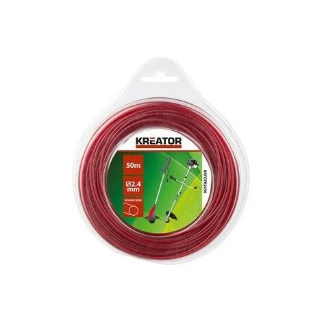Cette gamme de coupe-bordure ronde universelle de Kreator s’adapte à la plupart des bobines pour débroussailleuses et coupe-bordures. Le fil a un diamètre de 2,4 mm et une longueur de 50 m.