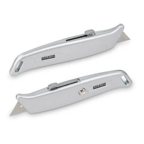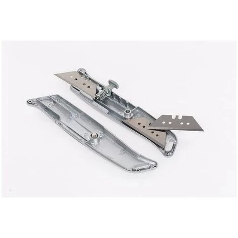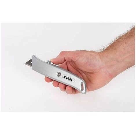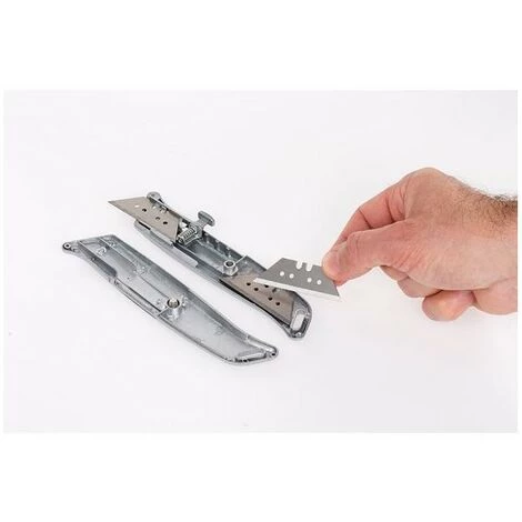 Avec ce couteau heavy duty en alliage de zinc, vous coupez vite et avec puissance les tapis, le vinyle, les couvertures goudronnées, emballages, etc. Vous pouvez utiliser aussi bien les lames droites qu’en crochet. Par mesure de sécurité, la lame se retire immédiatement après l’usage. Grâce au mécanisme de blocage, vous pouvez aussi bloquer la lame.