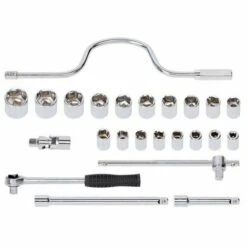 Grâce à ce jeu de 24 clés à douille (1/2″) en acier au carbone chromé, vous visserez solidement toutes les vis et tous les boulons. Ce jeu est rangé dans un coffret pratique que vous pouvez facilement emporter partout.