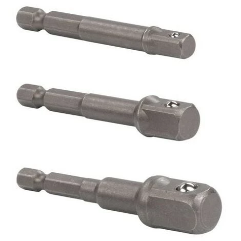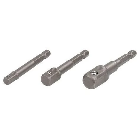 Jeu de 3 adaptateurs pour clé à douille de Kreator. Les adaptateurs servent à fixer des clés à douille à des visseuses et visseuses à percussion. Les adaptateurs en chrome vanadium vont d’une douille hexagonale à une douille 1/4’’, 3/8’’ et 1/2’’.