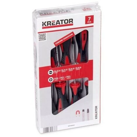 Les 7 tournevis de ce jeu sont fabriqués en chrome-vanadium et sont munis d’une pointe magnétique. Leur poignée ergonomique offre une prise ferme.