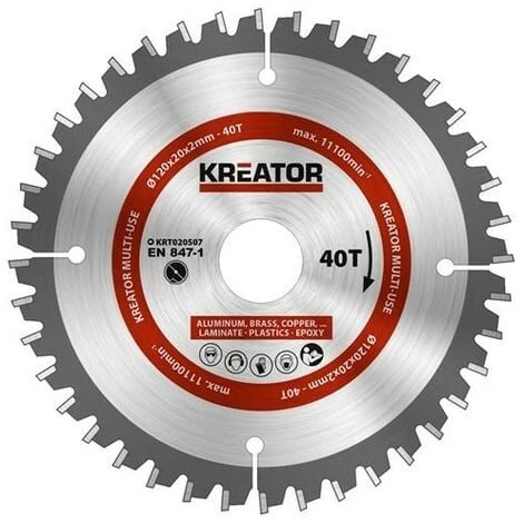 Cette lame de scie universelle en métal dur est adaptée pour une utilisation avec une petite scie plongeante. La lame de scie avec un diamètre de 120 mm et 40 dents est parfaite pour couper stratifiés, parquets, métaux non ferreux (cuivre, plomb, aluminium, laiton, …), plastique, époxy, bois, etc etcetera. L’alliage d’acier spécial assure une longue durée de vie, un bon refroidissement et une coupe précise.