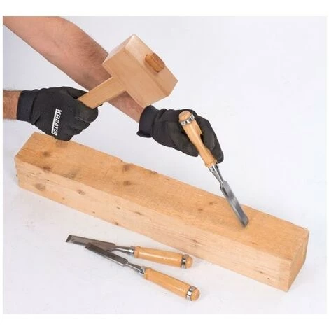 Ce marteau en bois Kreator est idéal pour les travaux de burinage du bois, entre autres. Le marteau est en bois de hêtre et a une tête de 120 x 50 mm.