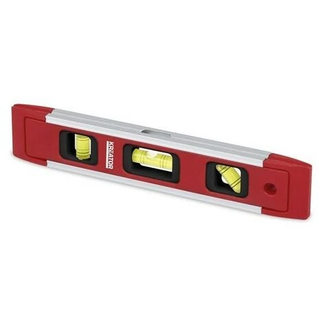 Avec ce niveau à bulle torpille Kreator de 230 mm de long, vous pourrez effectuer tout travail de précision. Il convient aux surfaces horizontales et verticales ainsi qu’aux inclinaisons de 45°. Grâce à son boîtier robuste et aux surfaces aimantées des deux côtés, c’est un incontournable dans toute boîte à outils.