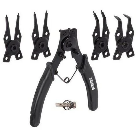 Cette pince circlips est adaptée à la pose ou au retrait des bagues intérieures et extérieures. Grâce aux 4 becs interchangeables, vous pouvez utiliser cette pince dans tous les endroits possibles, même s’ils sont difficilement accessibles. La pince est idéale pour le travail plus délicat. Elle peut même servir pour les bagues intérieures et extérieures à trous de tout au plus 1,5 mm de diamètre.