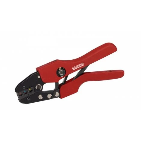 Avec cette pince à cosses de haute qualité, vous réalisez un travail précis. Vous sertissez avec une très grande précision les cosses de câble rouges, jaunes et bleues typiques.