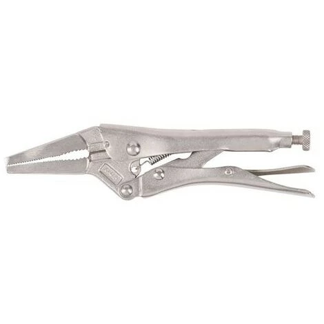 Cette pince grip à bec plat a une longueur de 175 mm. Elle se compose d’acier fin au carbone et est entièrement nickelée. Cette pince serre fermement les tuyaux et autres objets sans que vous ne deviez fournir de gros efforts. Vous pouvez mettre au point le réglage fin et la force de serrage au moyen de la roulette d’engrenage.