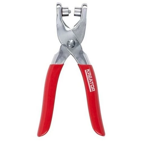 Cette pince à œillets Kreator convient à la pose d’œillets dans les textiles et autres matériaux fins, d’un diamètre maximum de Ø7 mm. Les poignées softgrip offrent le confort nécessaire.
