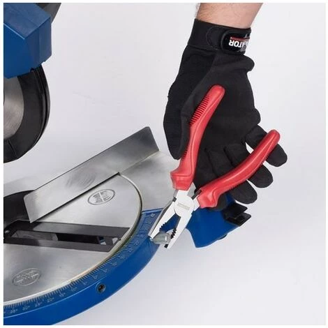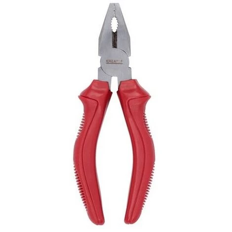La pince universelle mesure 150 mm de long. Elle est fabriquée en acier fin au carbone renforcé, tandis que son manche est en PVC.