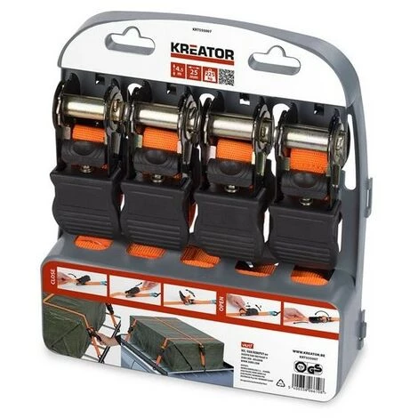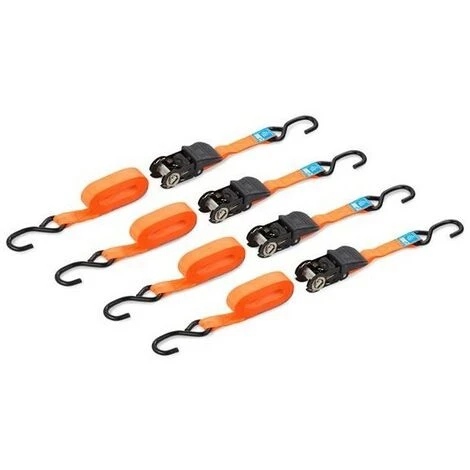 Ces 4 sangles de serrage professionnelles avec boucles à cliquet et crochets sont idéales pour l’arrimage des chargements, par exemple pour le transport de marchandises. Pensez par exemple à la fixation ferme de meubles dans l’espace à cargaison d’un camion, des bagages sur la voiture, etc. Les sangle de serrage peuvent supporter un poids allant jusqu’à 225 kg et mesurent 4,5 mètres de long et 25 mm de largeur. Les sangles de serrage sont certifiées GS et vous garantissent donc la sécurité.