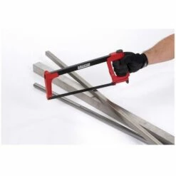 Cette scie à métaux mesure 300 mm de long. Elle est équipée d’une poignée soft grip. La lame peut facilement être remplacée et sa tension ajustée.