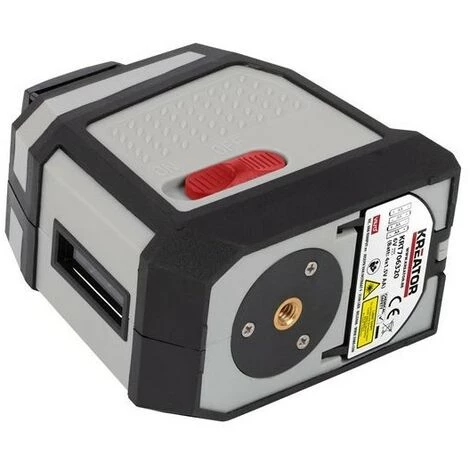 Avec ce laser en croix à 360° de Kreator vous projetez une ligne laser verticale ou une ligne laser à 360°. Ainsi vous alignez toute une chambre à partir d’un seul point. C’est idéal si vous souhaitez tapisser ou carreler seulement la moitié inférieure d’une chambre. Au cas où vous projetez la ligne laser verticale et la ligne laser à 360° ensemble, vous obtiendrez une croix.