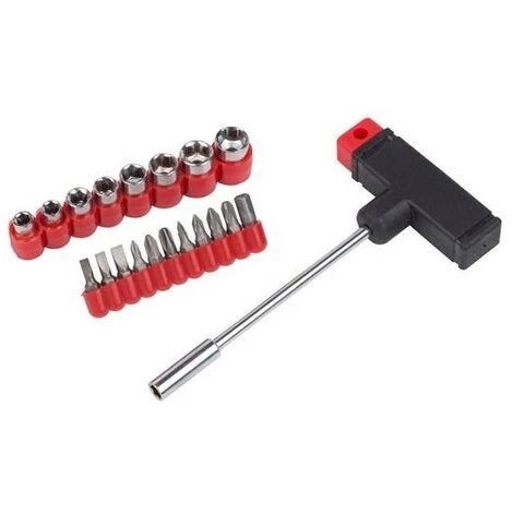 Ceci est un jeu de 21 tournevis et clés à douille de Kreator. Avec la poignée de tournevis pratique en forme de T avec porte-embout, vous pouvez effectuer tous les travaux de vissage possibles et imaginables. Le jeu comprend une série complète d’embouts de tournevis et de douilles.