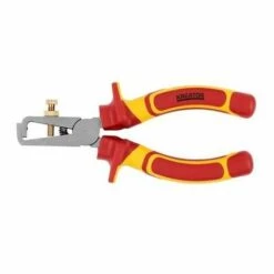 Cette pince à dénuder est entièrement isolée et certifiée VDE. Vous êtes donc protégé à 100 % contre les chocs allant jusqu’à 1 000 volts et vous pouvez donc enlever en toute sécurité le matériel isolant autour des fils électriques. La vis vous permet de régler la pince à dénuder de manière telle à obtenir la profondeur de coupe souhaitée. La pince est réalisée en acier chrome-nickel renforcé et poli. La poignée en caoutchouc moelleuse garantit une prise ferme et antidérapante et est confortable en main. La pince à dénuder mesure 150 mm de long.