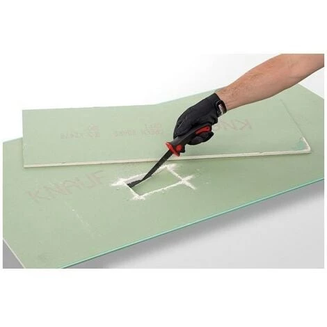 Cette scie à métaux pointue découpe rapidement les panneaux en gypse, fibre et plâtre. Les dents renforcées de la lame d’acier de 180 mm de long sont aiguisées sous trois angles. Vous êtes donc assuré d’obtenir un résultat parfait. La poignée est munie d’un caoutchouc antidérapant. La lame a une épaisseur de 1,2 mm.